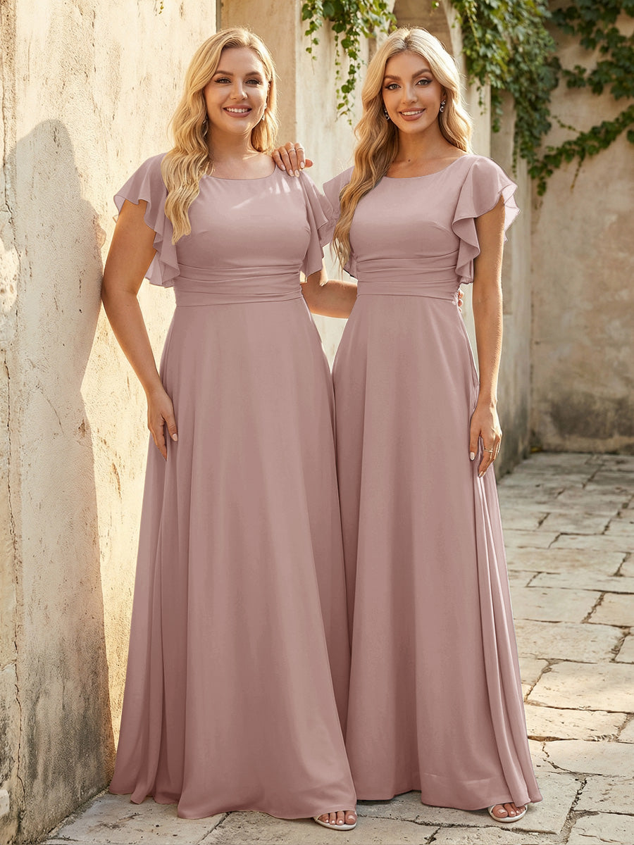 • Scoop Neck Corset Pleated Chiffon Bridesmaid Dresses