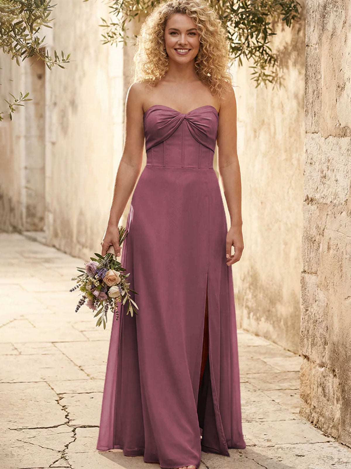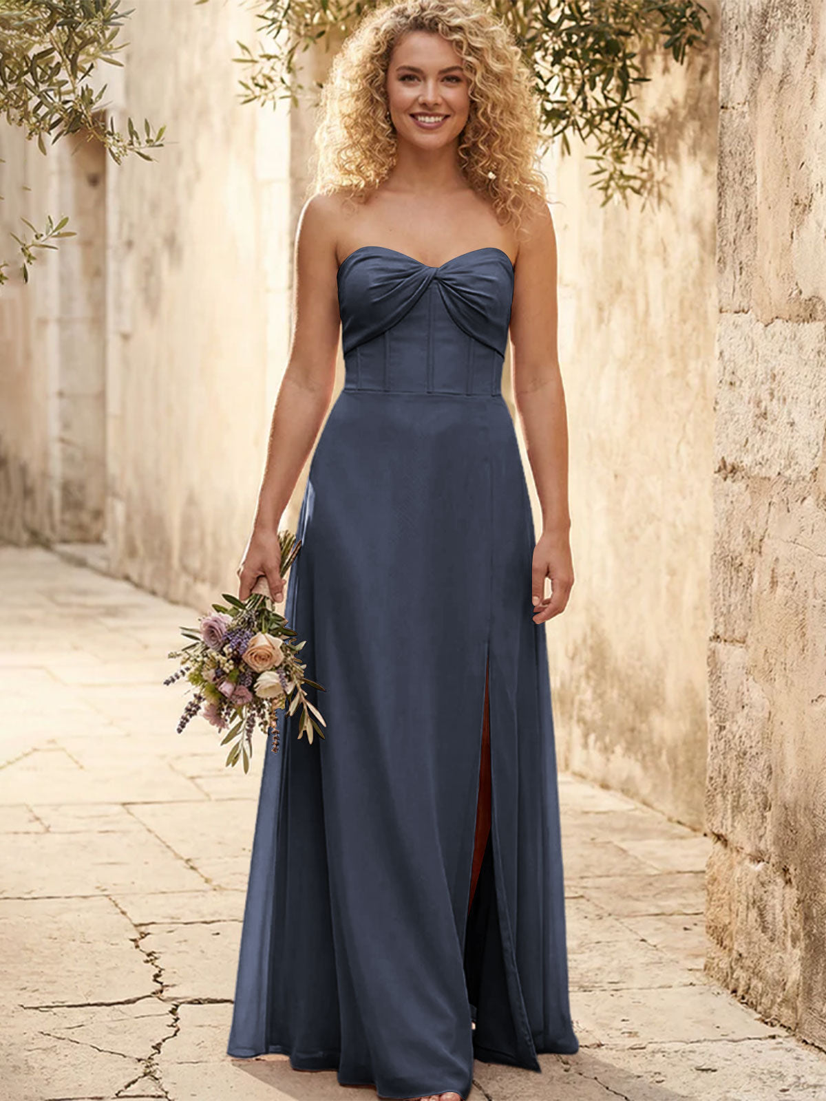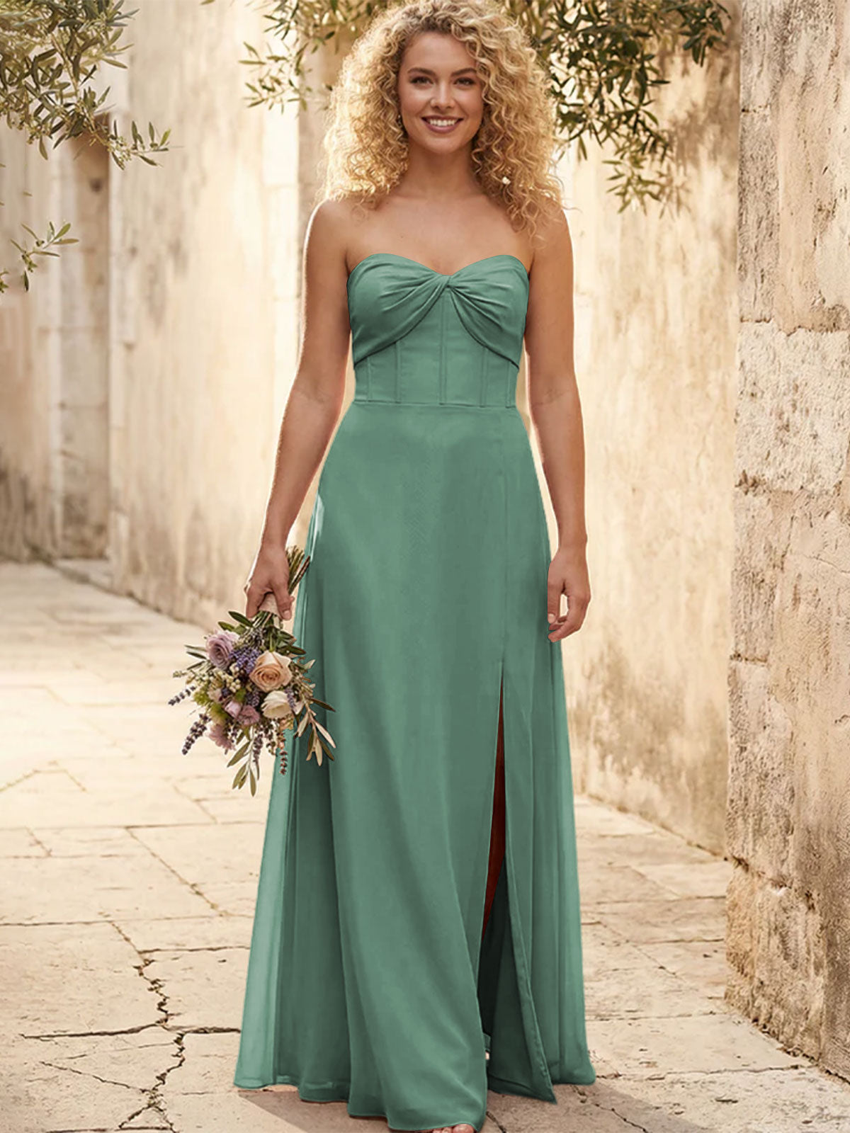 Chiffon Strapless Long Bridesmaid Dresses with Slit