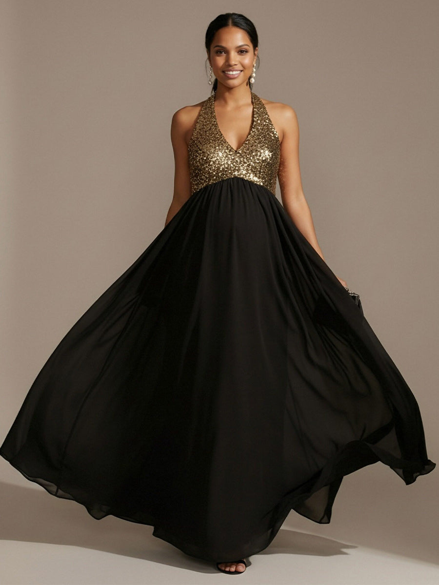Halter Chiffon A Line Sequin Wedding Guest Dresses