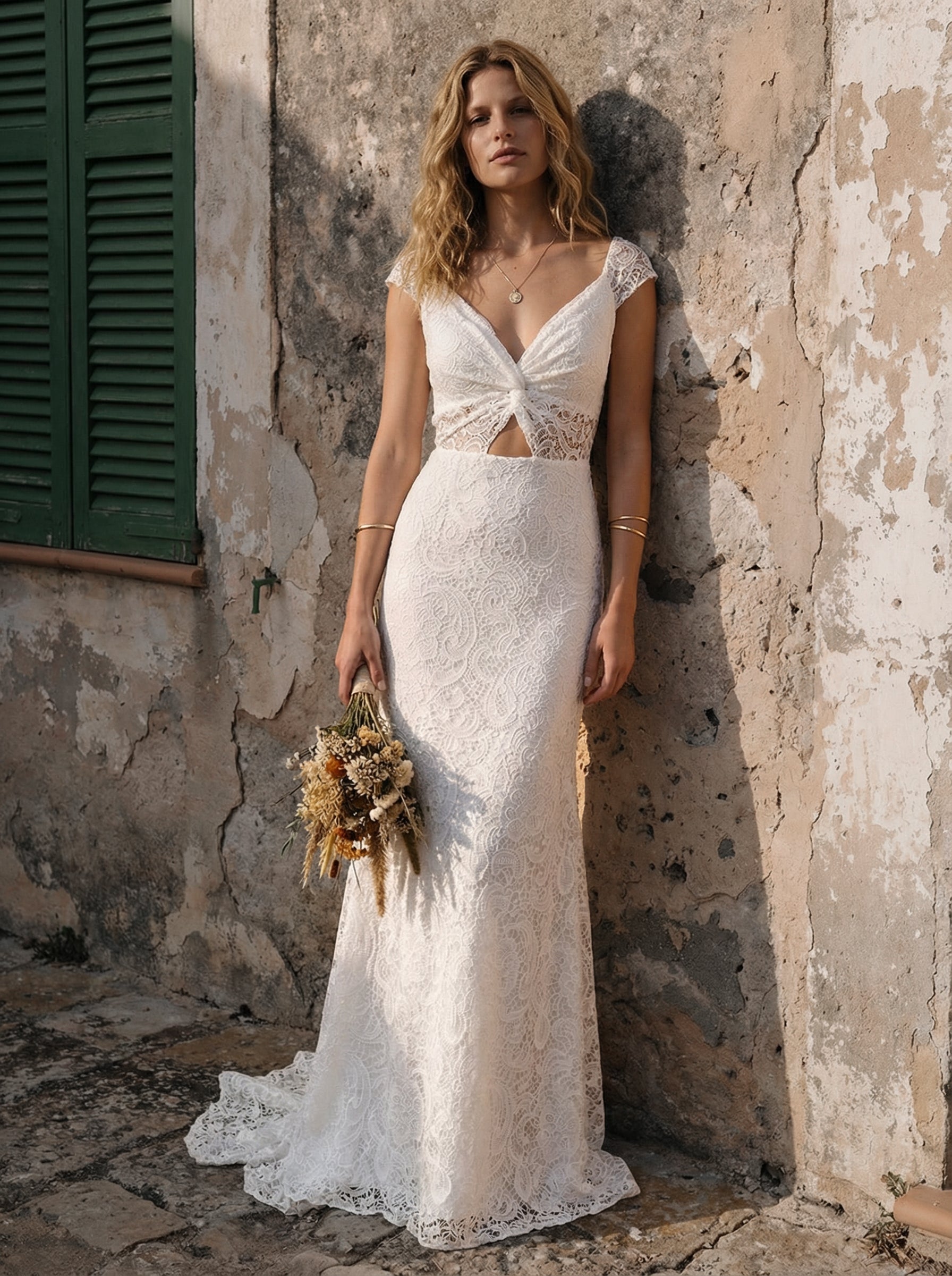 Laces Bodycon V Neck Long Wedding Dresses