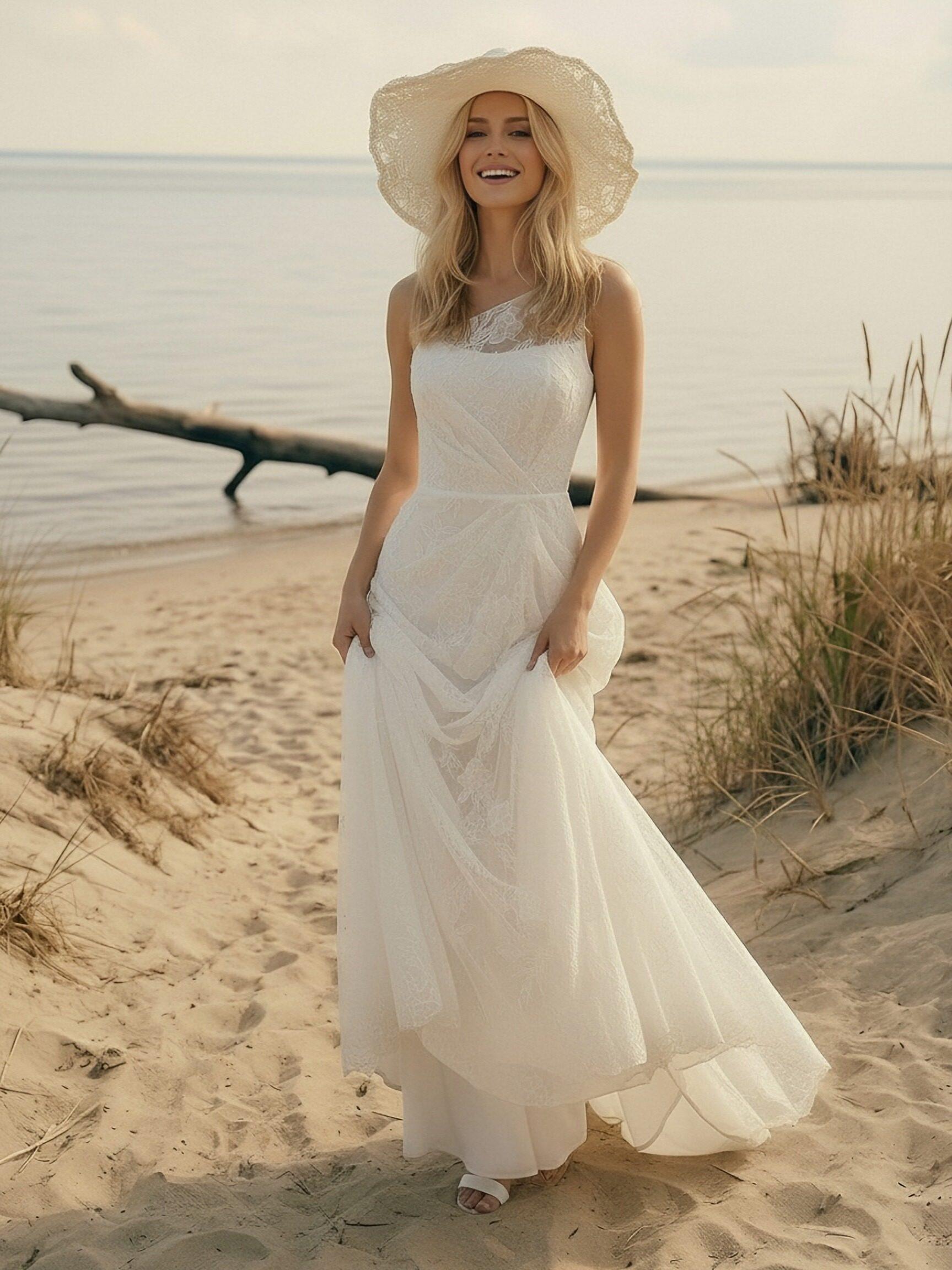 Laces Mermaid One Shoulder Long Wedding Dresses
