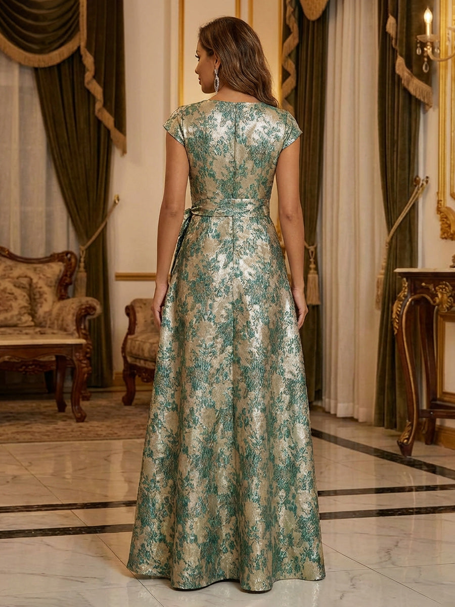 Mother of the Bride & Groom Dress Corset A Line V Neck Floral with Slit