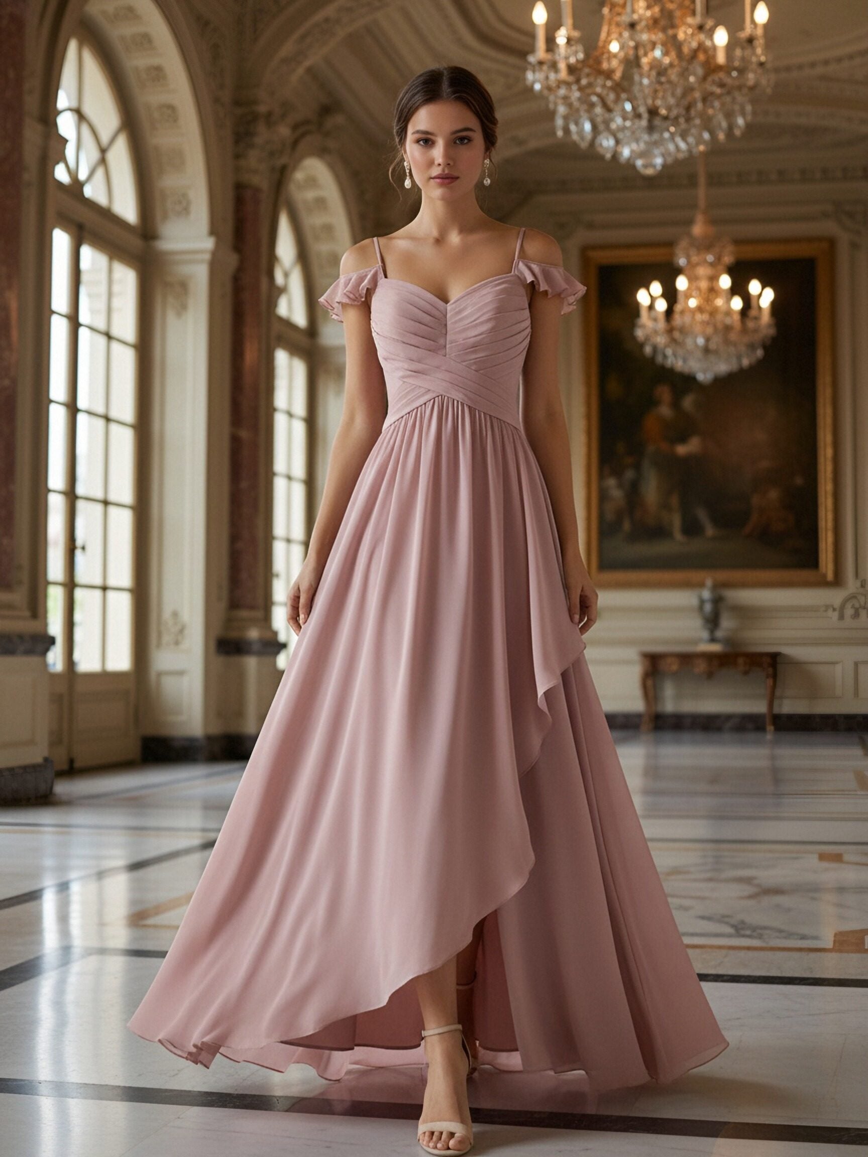 Off the Shoulder Pleated Ruffles Chiffon Bridesmaid Dresses