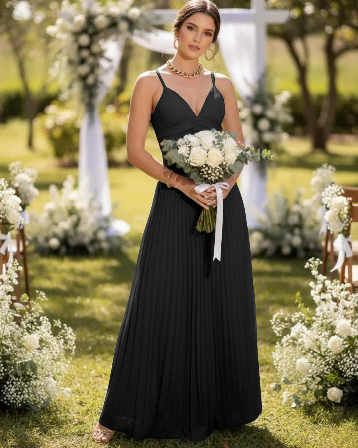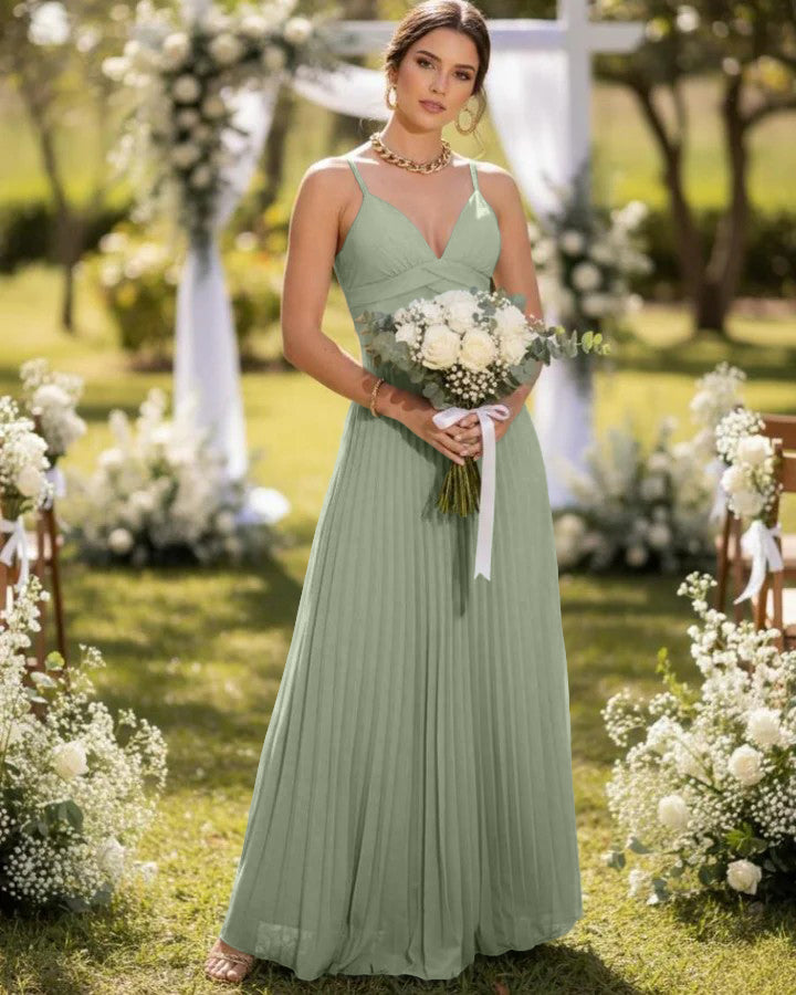 Spaghetti Straps Chiffon Pleated Maxi Bridesmaid Dresses