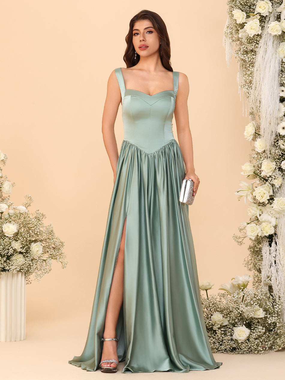 Spaghetti Straps Satin Pleated Bridesmaid Dresses